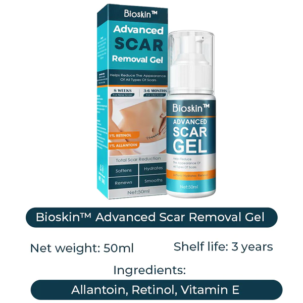 A scar can be flattened, smoothed, or the color removed with Bioskin™ Advanced Scar Removal Gel. The Gel helps flatten the elevated tissue by gradually destroying scar tissue. With this product, the scar’s size, redness, hardness, and irritation are all reduced. Leaving no scars on your skin!
