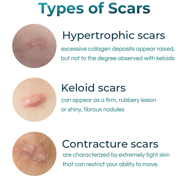 A scar may appear flat, lumpy, sunken, or colored. It may be painful or itchy. The final look of a scar depends on many factors, including the skin type and location on the body, the direction of the wound, the type of injury, age of the person with the scar, and his or her nutritional status.